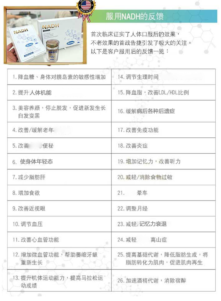 经过多项科学人体临床试验的NADH诞生!