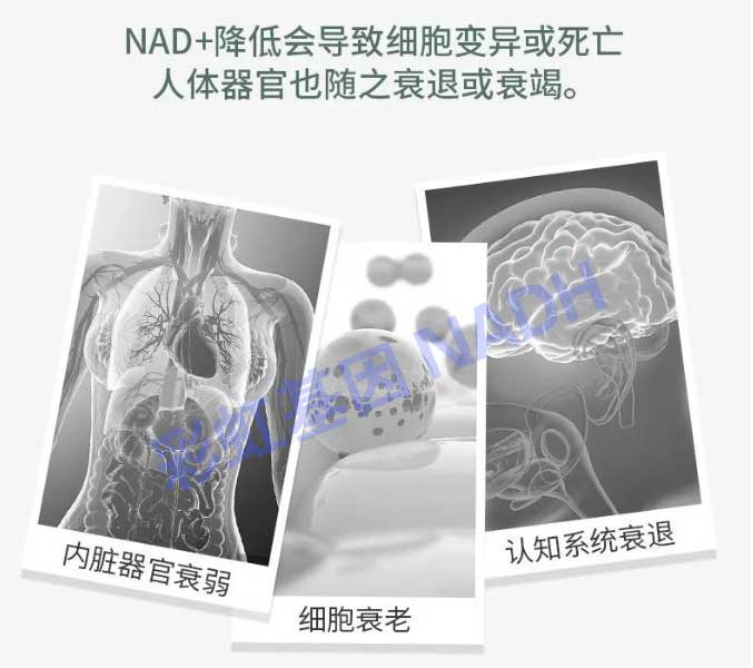 多位诺贝尔奖科学家表明:衰老过程中NAD+的下降被认为是导致疾病和残疾的主要原因,如听力和视力丧失,认知和运动功能障碍,免疫缺陷,自身免疫炎症反应失调导致的各种疾病疾病。因此,提高了体内NAD+含量,便可延缓、改善、防止衰老相关的多种表型,或年龄诱导的代谢紊乱、老年疾病等。