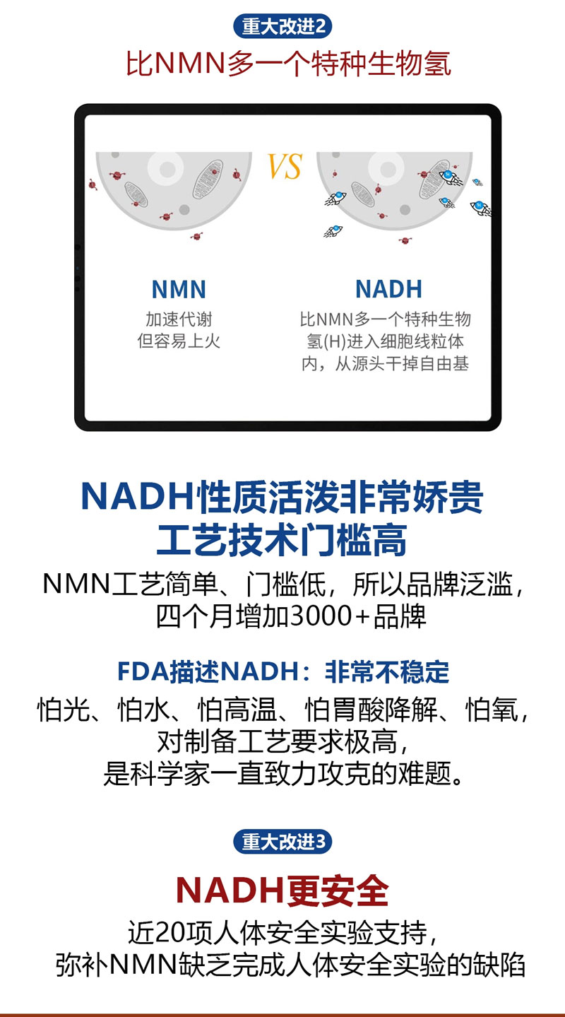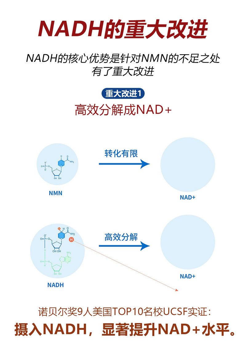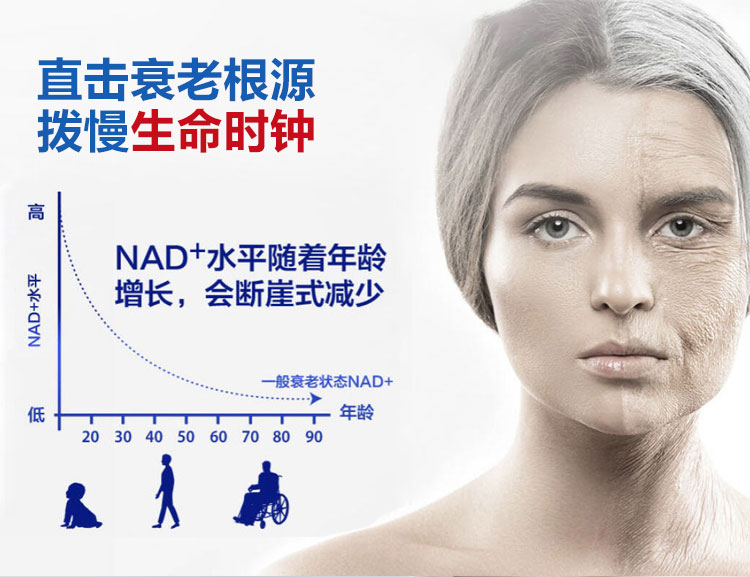 中年以后,人体内NAD+水平断崖式下降,引发人体机能衰老质变,NAD+分子量很大,没有办法直接吸收,需要补充前体NAD+!